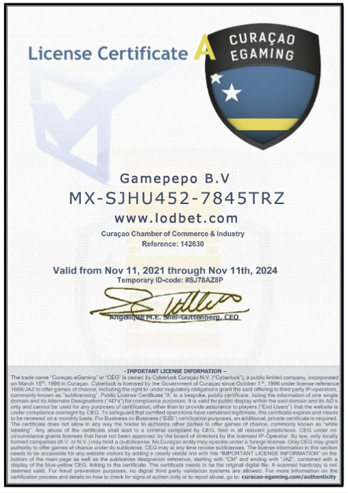 Cyberluck is licensed by the Government of Curaçao since October 1st, 1996 under license